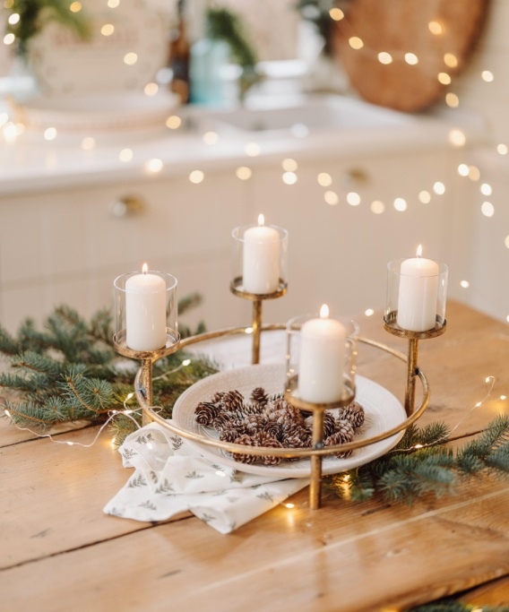 Wysokośc świecznika ze szklanymi kloszami: 22 cm