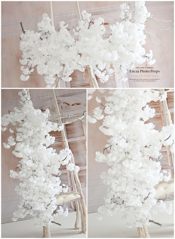Plastyczna gałąź wykonana z kwiatów jabłoni o długości 200 cm
