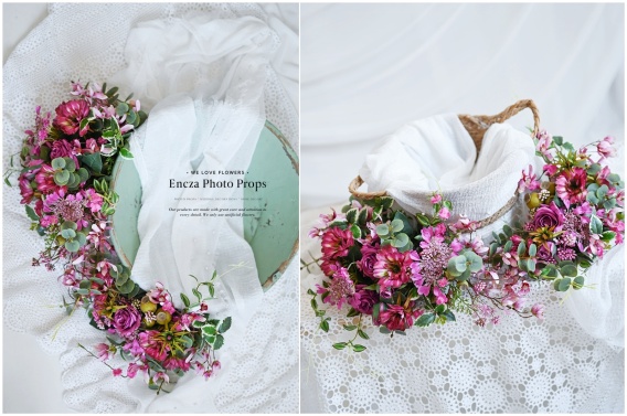 Girlanda do sesji noworodkowych wykonana z wysokiej jakości sztucznych kwiatów.
