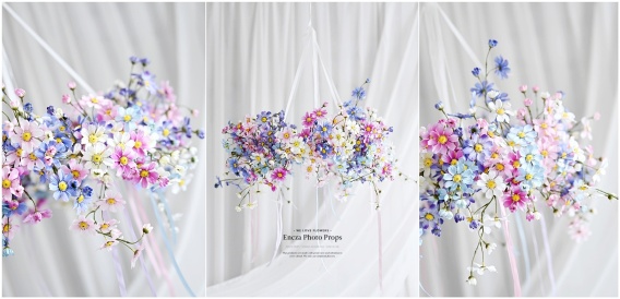 Podwieszany wieniec wiosenny wykonany ze sztucznych kwiatów